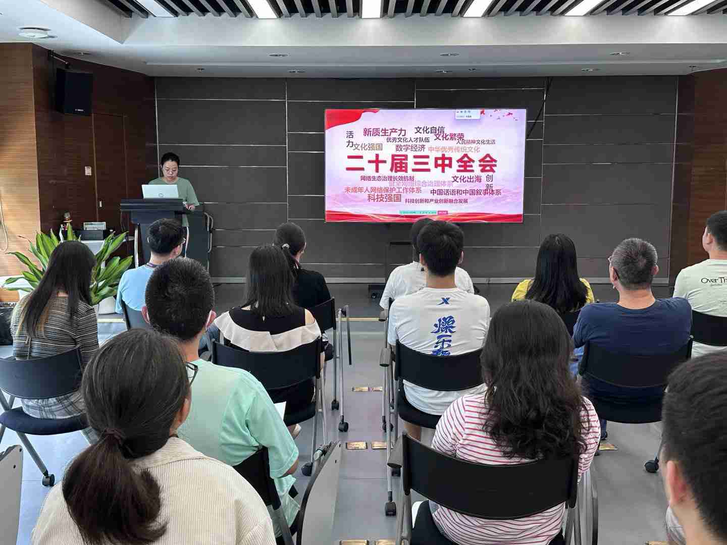 与会人员深入学习《决定》内容。。。党的二十届三中全会提出必须增强文化自信,,,发展社会主义先进文化,,,,弘扬革命文化,,,传承中华优秀传统文化,,加快适应信息技术迅猛发展新形势,,,构建更有效力的国际传播体系,,,,这为广大文化产业工作者指明了奋斗方向。。