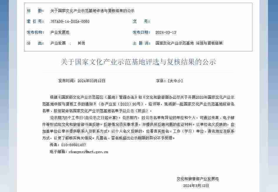 新一批国家文化产业示范基地公示,,,yaxin111成功入围